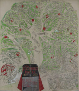 Doswell created the tree’s folk-art design and artist Wilfred T. Washington put ink to canvas, writing in names by freehand. It was unveiled at the 1959 family reunion.